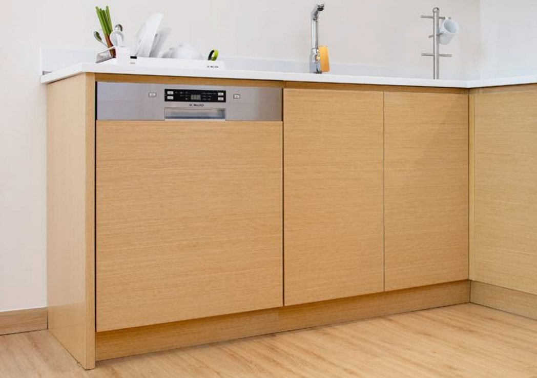 - Máy rửa bát bán âm: Dòng này sẽ trang bị mặt điều khiển ở ngoài. Phần cánh mở được thiết kế theo ý người dùng có thể là ốp gỗ đồng màu với màu tủ bếp. Hoặc có dòng sẽ có cánh Inox của nhà sản xuất