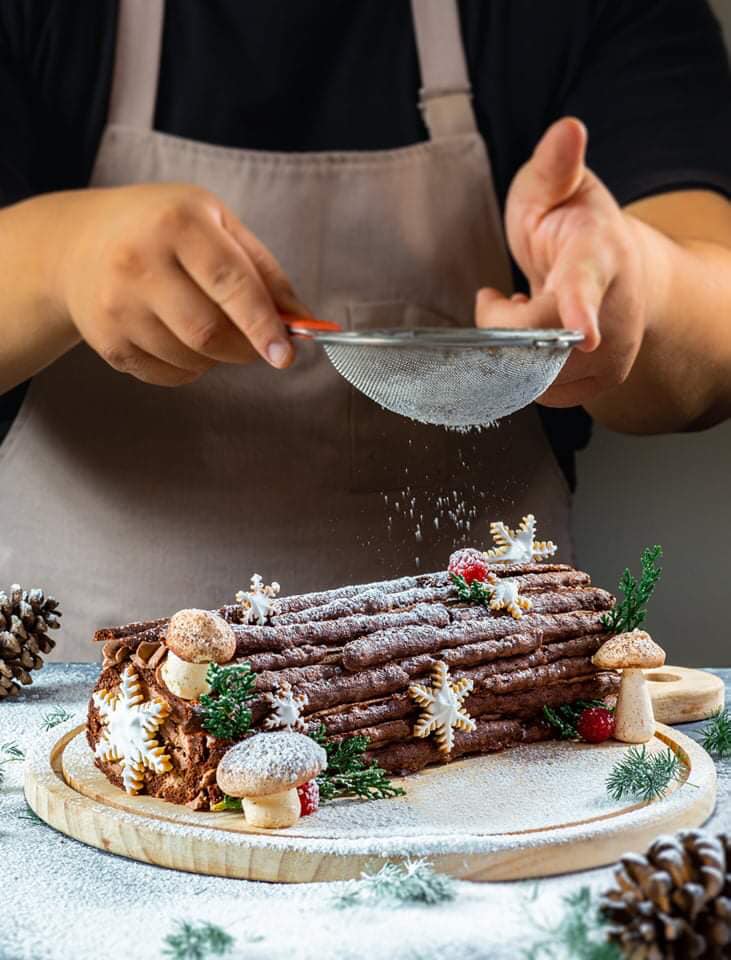 Món bánh đầu tiên nhất định phải thưởng thức mỗi khi Giáng Sinh về chính là bánh kem khúc cây. Đây là món bánh dành riêng cho dịp lễ đầy sắc màu này. Bánh có nguồn gốc từ Pháp với tên gọi là Bûche de Noel (Christmas Log hay Yule Log) có nghĩa là “khúc cây lễ Giáng sinh”.