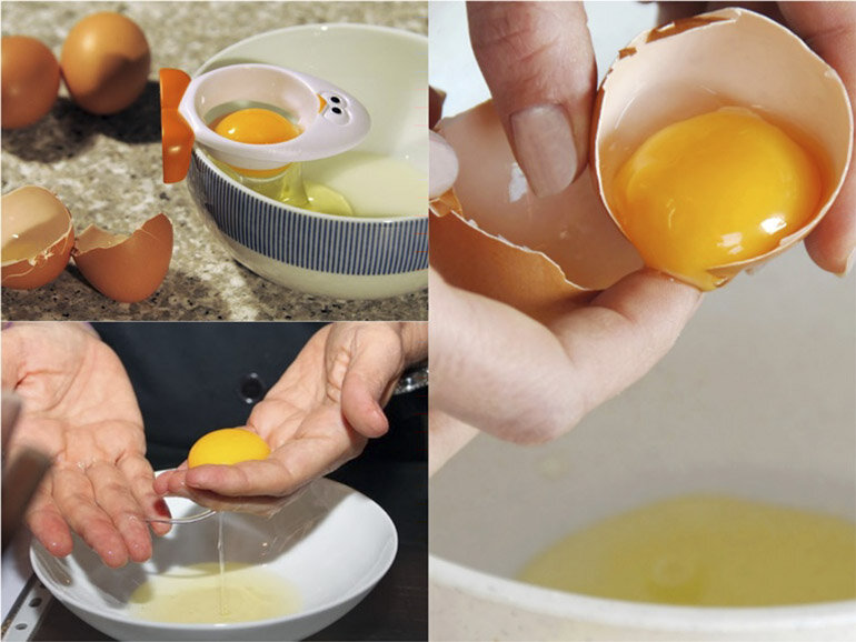 - Cần tách ra 2 phần lòng trắng trứng và lòng đỏ trứng gà riêng biệt.