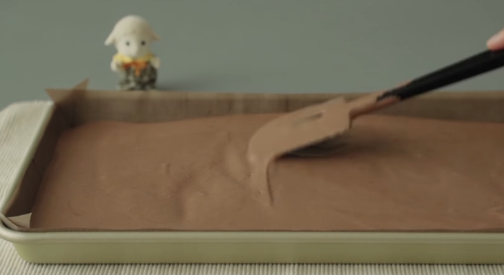 Bước 7: Lót tấm giấy nến lên khuôn nướng, dàn đều hỗ hợp cho vào lò nướng cài đặt nhiệt độ 180 độ trong 16 phút.